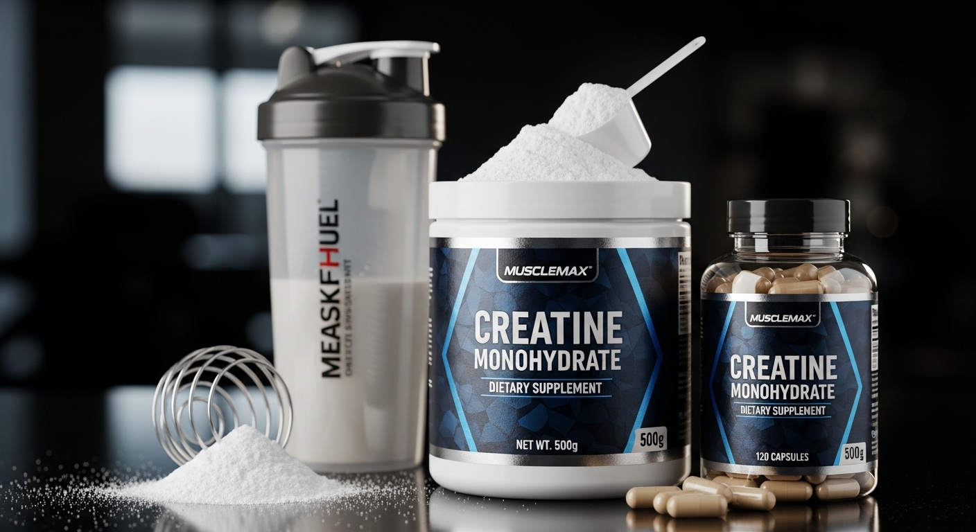 食事では肉や魚に含まれていますが、効率的に取り入れるならサプリメント(特にクレアチン・モノハイドレート)が王道です。